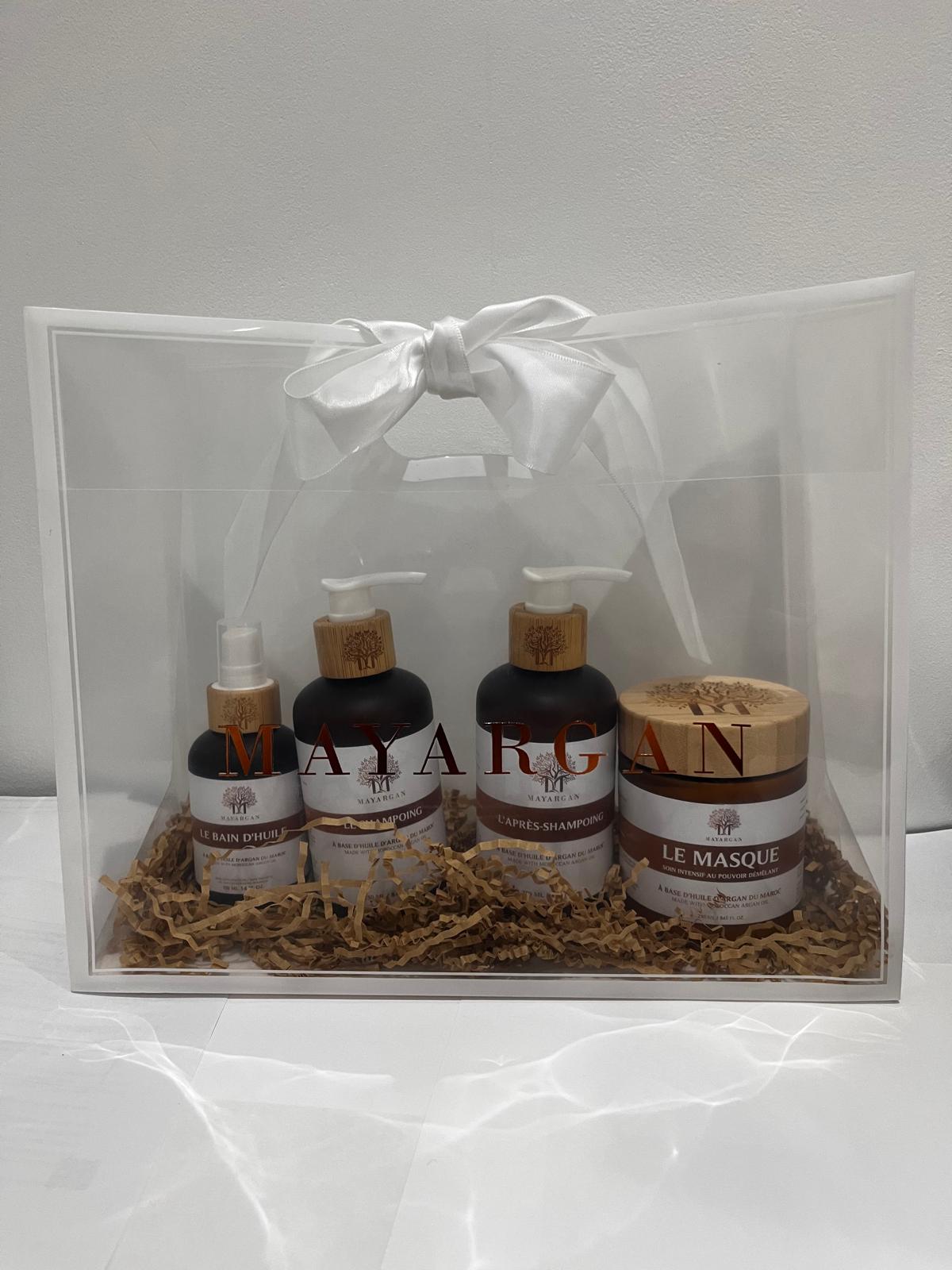 Le coffret cadeau Mayargan est une véritable invitation à découvrir un rituel capillaire complet inspiré des traditions berbères ancestrales. Pensé comme une expérience de soin globale, il rassemble plusieurs essentiels formulés à base d’huile d’argan bio du Maroc et d’huiles végétales précieuses, sélectionnées pour leurs propriétés nourrissantes, protectrices et réparatrices.